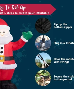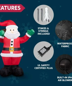 Joiedomi 1,8m Aufblasbare Weihnachtsdekoration mit LED, Weihnachtsmann für Garten & Party