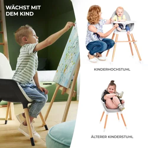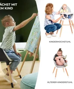 Dies sind ein Kinderhochstuhl und ein Spielstuhl in einem. FINI begleitet Ihr Kind von den ersten Versuchen, selbstständig zu essen, bis hin zum Schreibenlernen.
