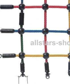 Dieses Kletternetz (MW div. Maschenweiten) aus Herkulesseil mit Stahlseele und Aluminium-Knotenkugeln ist besonders geeignet für die Outdoor-Montage auf öffentlichen Spielplätzen.