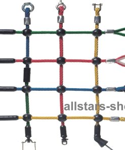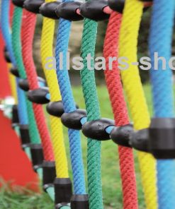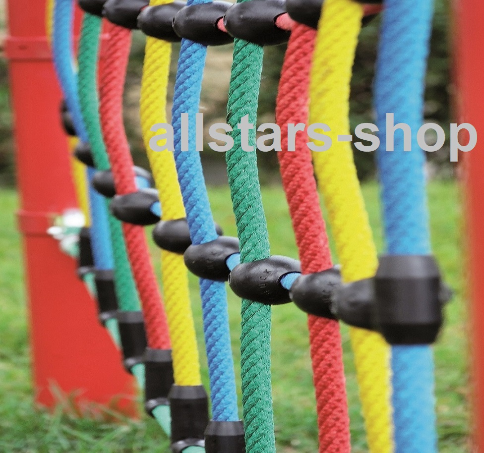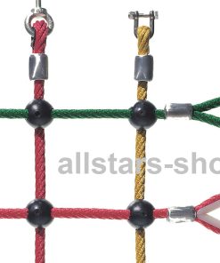 Dieses Kletternetz (MW div. Maschenweiten) aus Herkulesseil mit Stahlseele und Kunststoff-Knotenkugeln ist besonders geeignet für die Outdoor-Montage auf öffentlichen Spielplätzen.