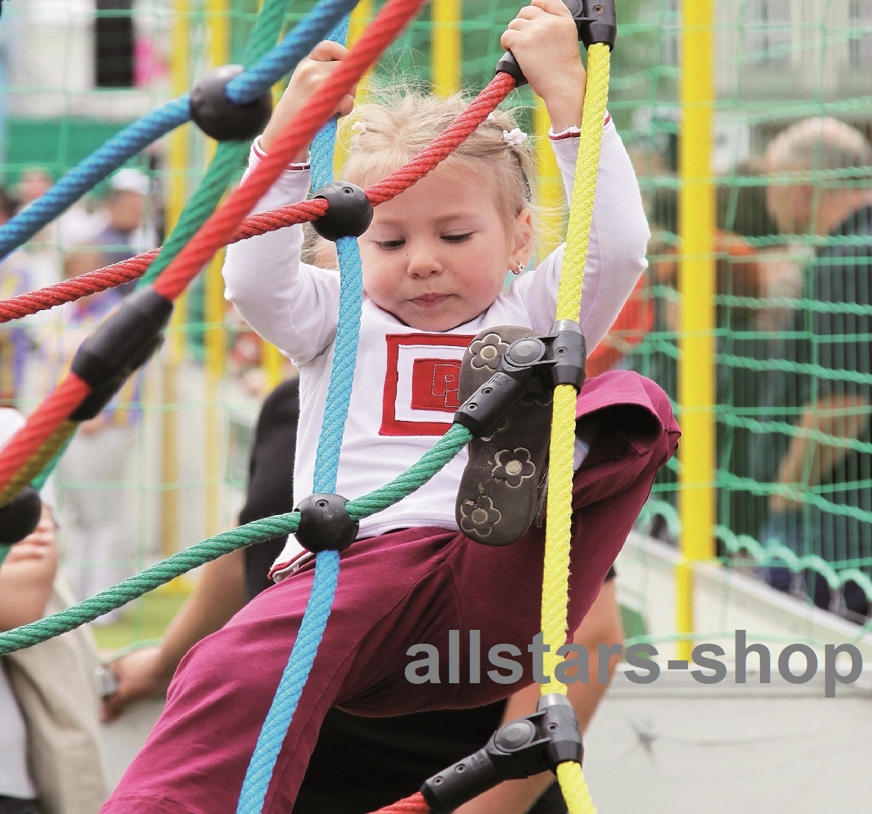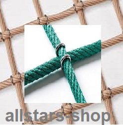 Dieses Kletternetz (MW div. Maschenweiten) aus Herkulesseil mit Stahlseele und V2A-Klammerverbindung ist besonders geeignet für die Outdoor-Montage auf öffentlichen Spielplätzen.