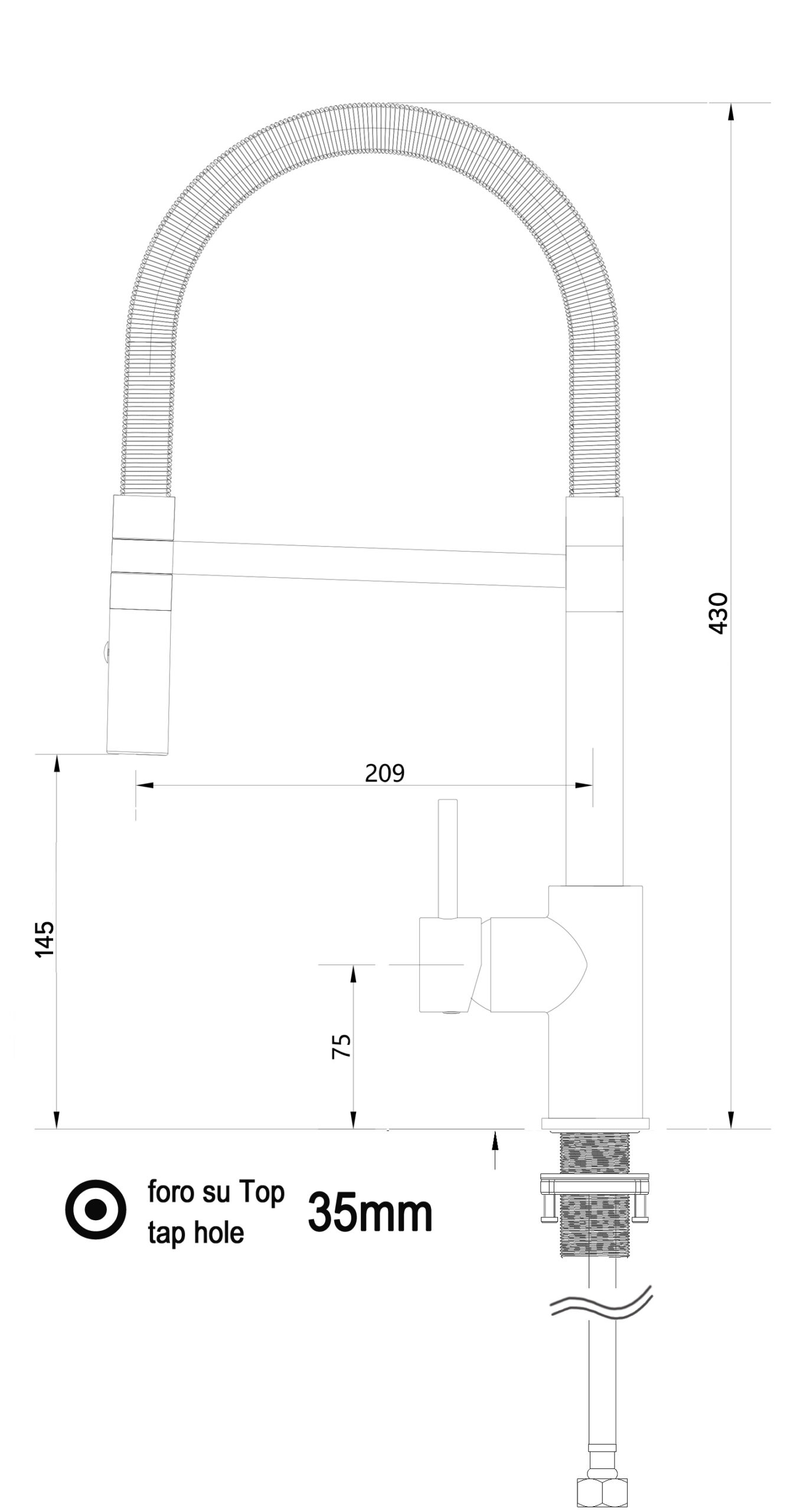 - Bohr/Hahnloch der Spüle: 35mm.