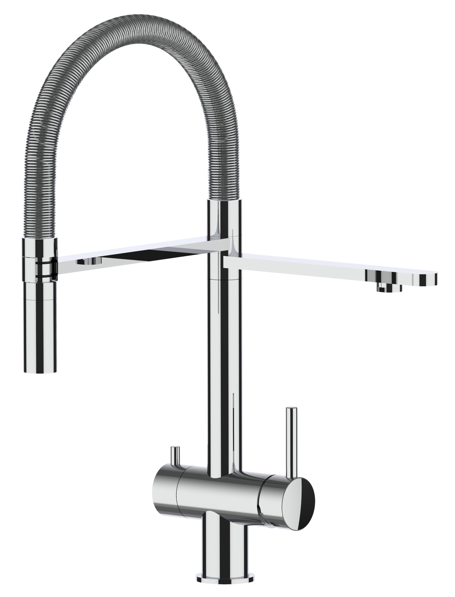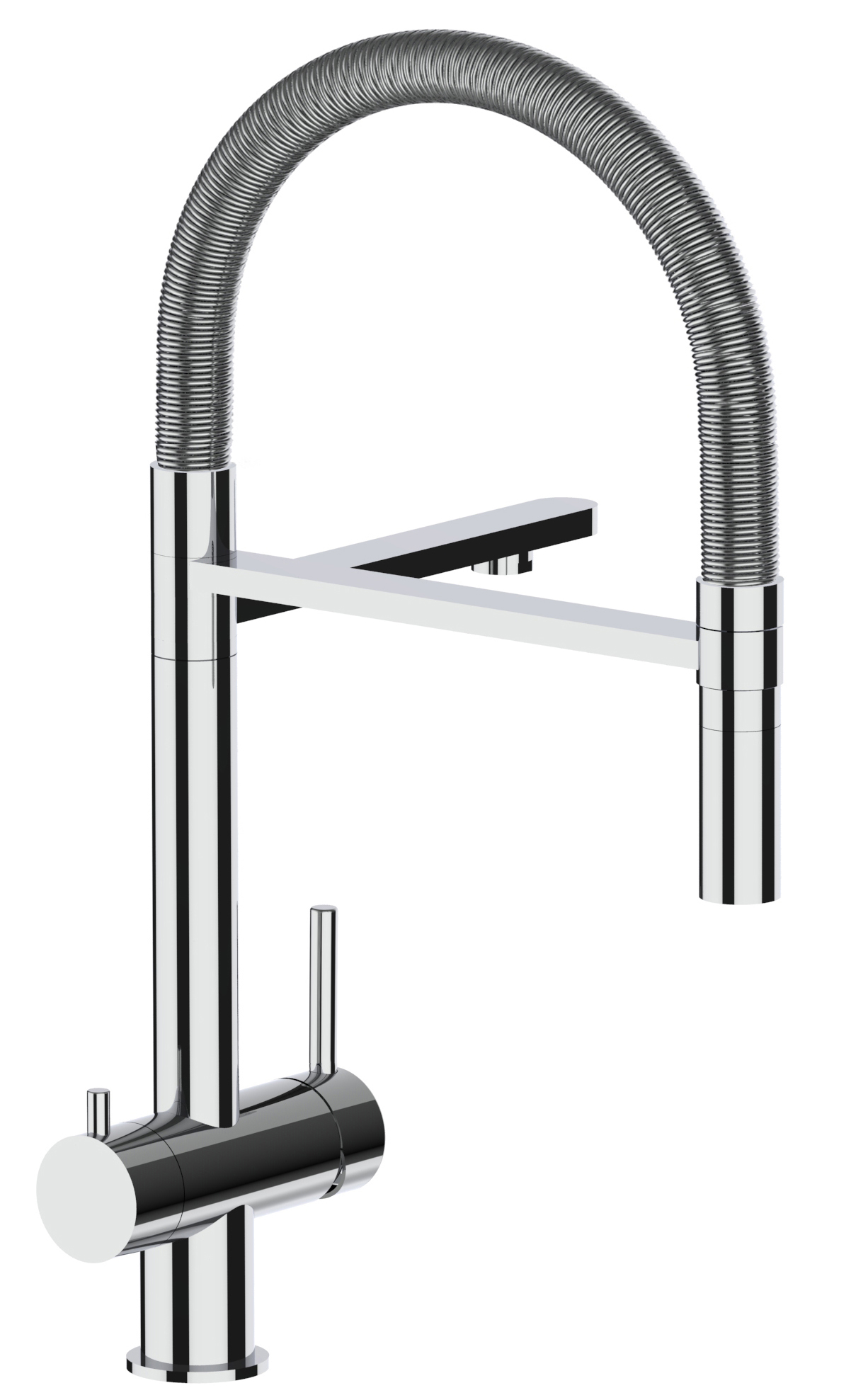 - Flex-Schlauch aus Stahlfeder mit höchstem Hygieneanspruch – Grosser Aktionsradius von ca. 60 cm durch die Schlauchbrause.
