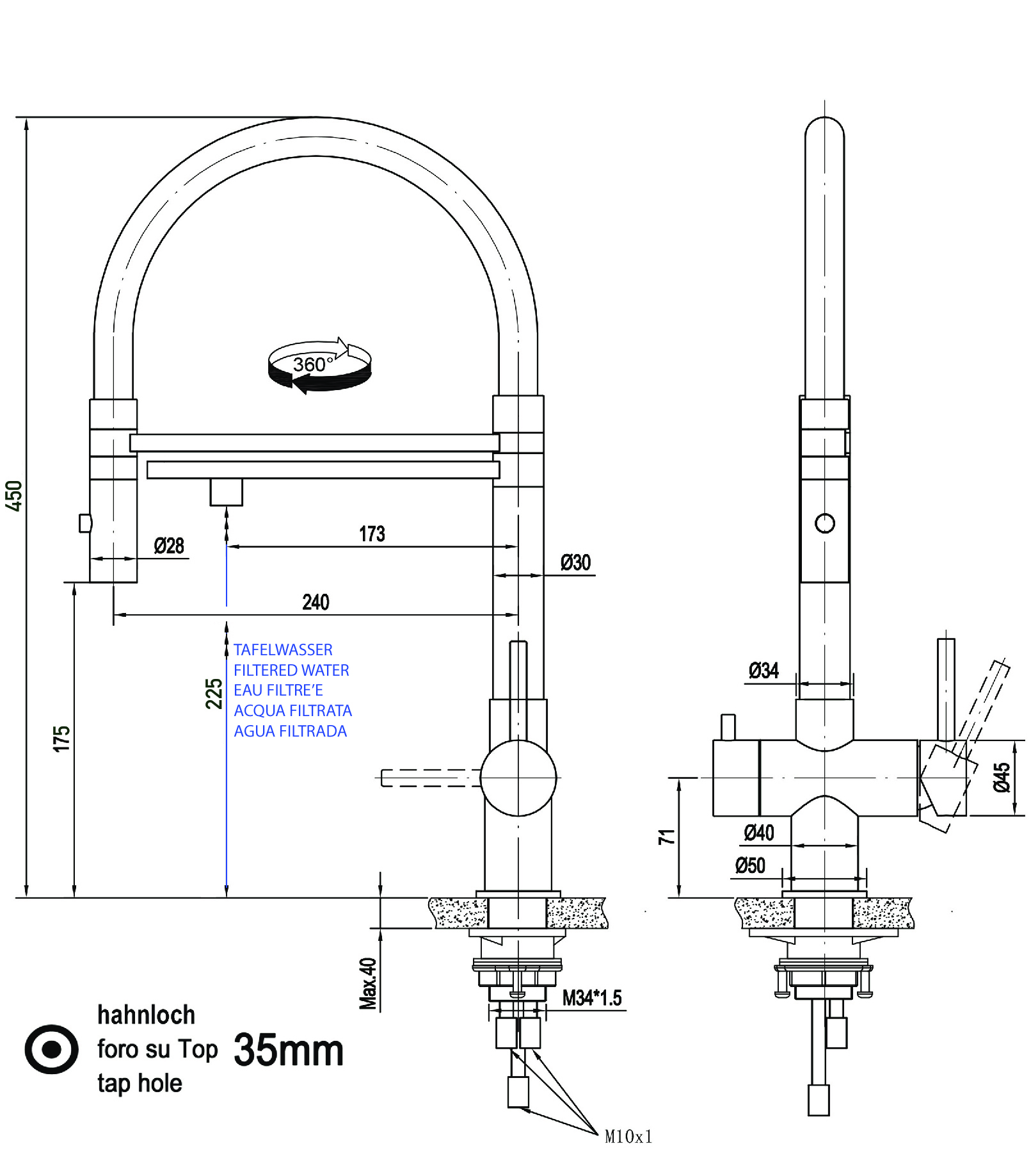 - Bohr/Hahnloch der Spüle: 35mm.