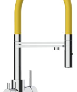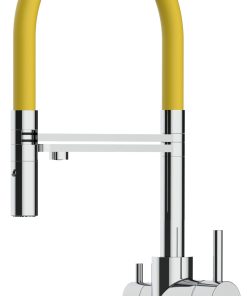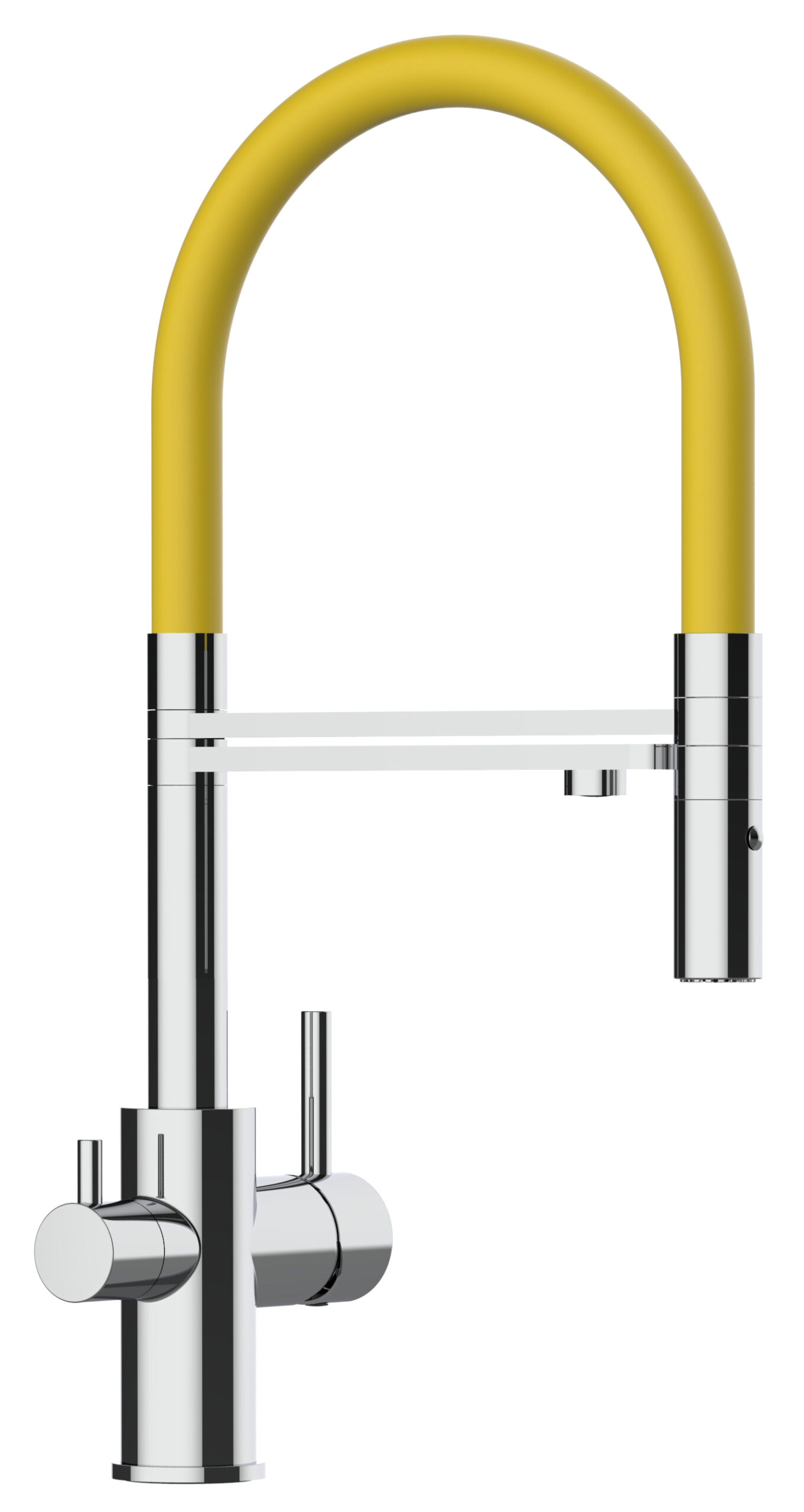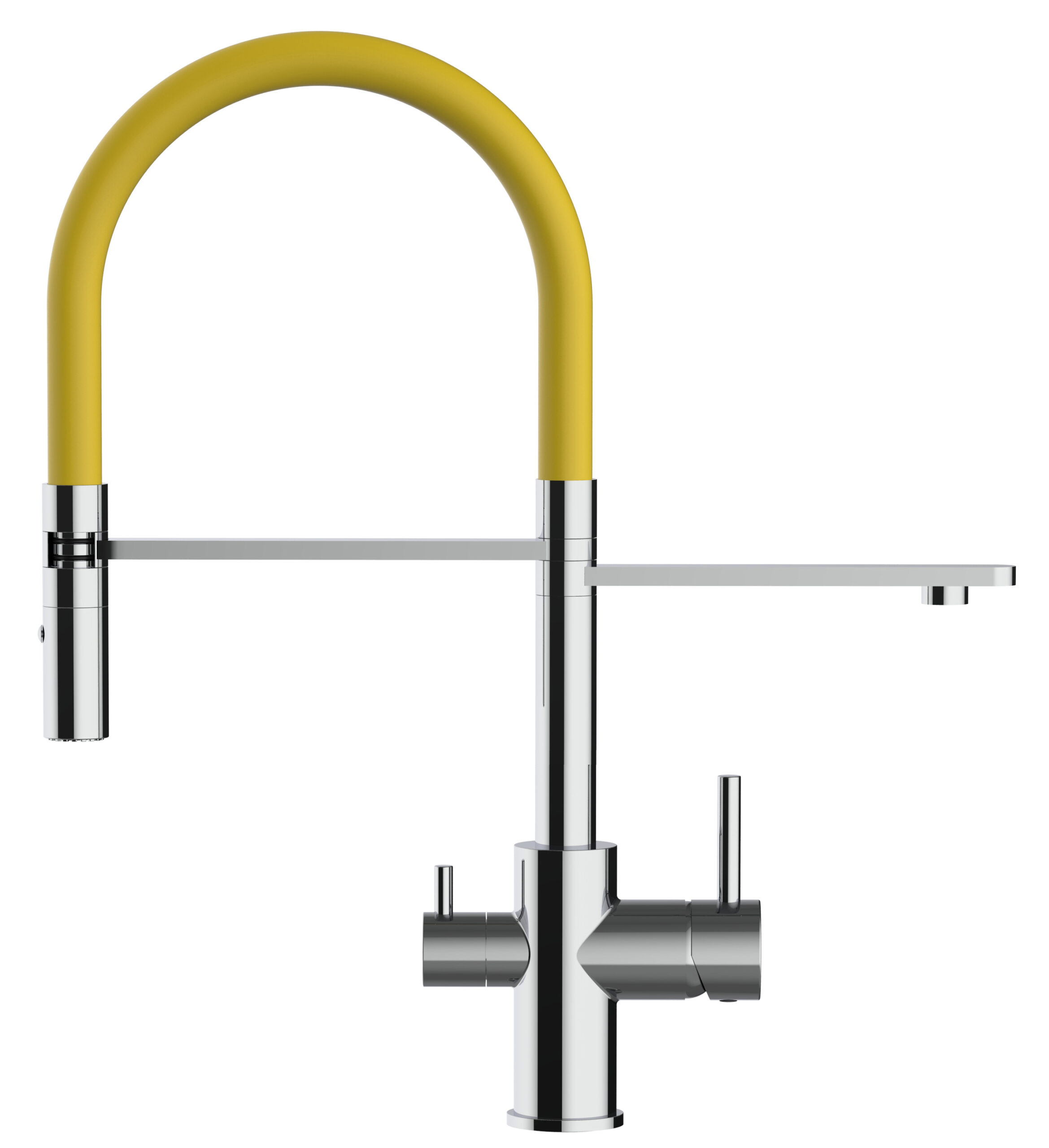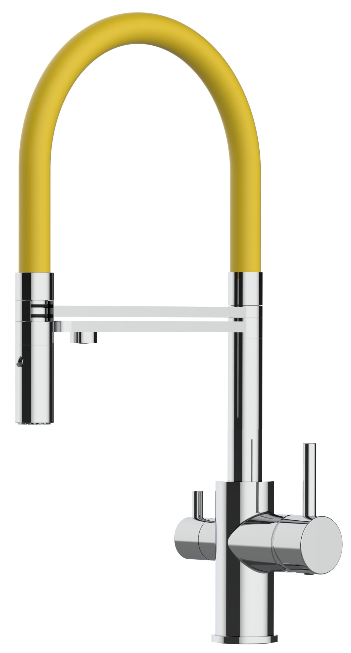 3 Wege Wasserhahn Küchenarmatur Spültischmischer, Verchromt mit 360° schwenkbarem Auslauf und abnehmbare 2 strahl Handbrause – für Kalt-,Warm- und Filterwasser mit separatem Ventil am Hahn und separatem Auslauf für gefilterte Wasserentnahme