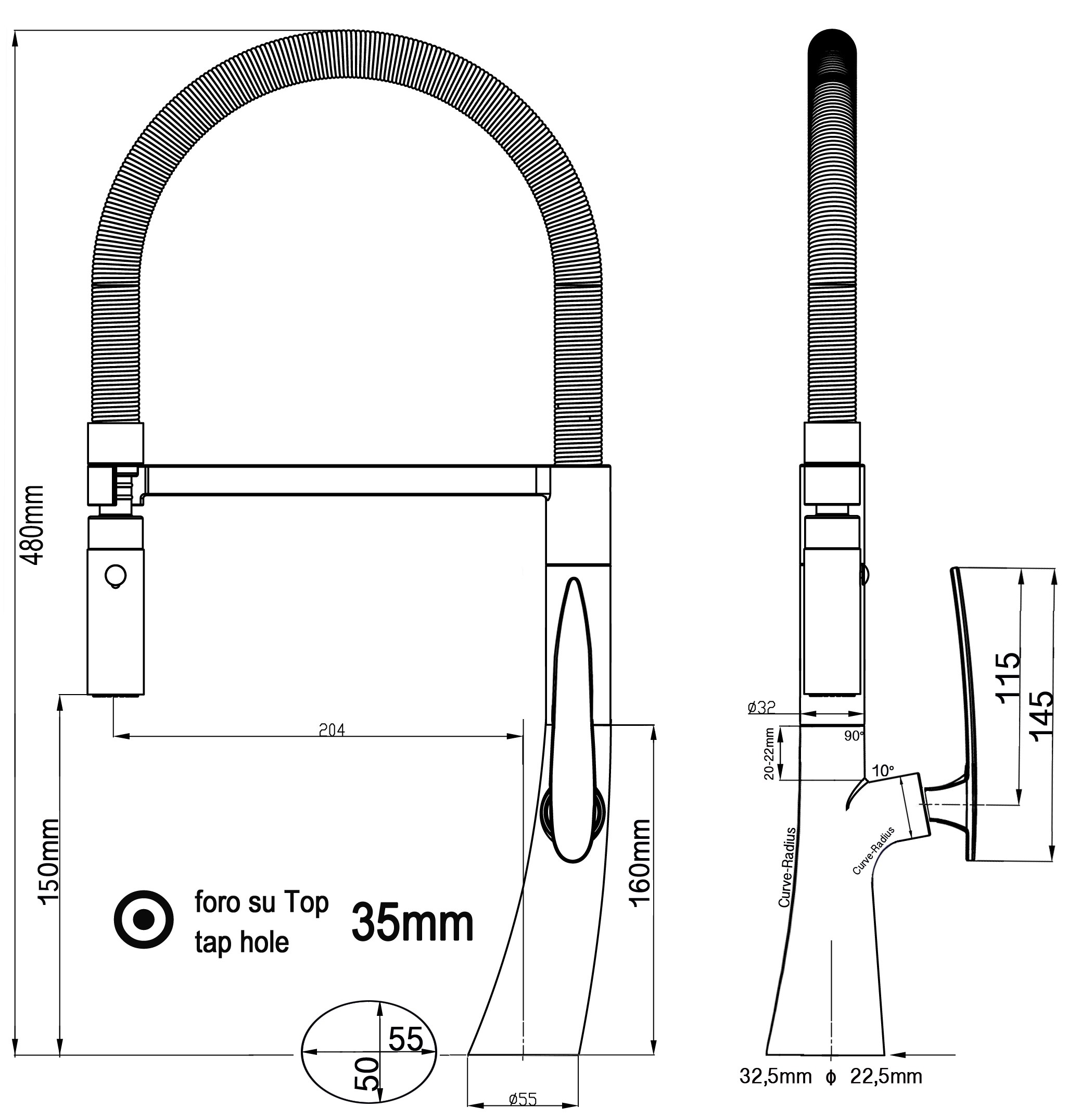 - Flex-Schlauch aus Silikon mit höchstem Hygiene Anspruch – Grosser Aktionsradius von ca. 60 cm durch die Schlauchbrause.