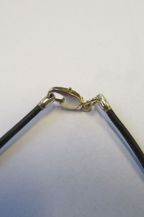 Dieses schwarze Lederband mit silber farbigen Schließe passt zu allen unseren Trommelsteinen mit Loch.