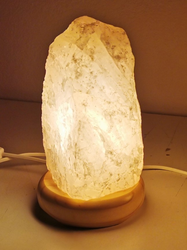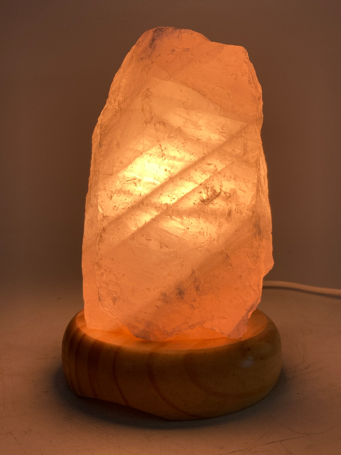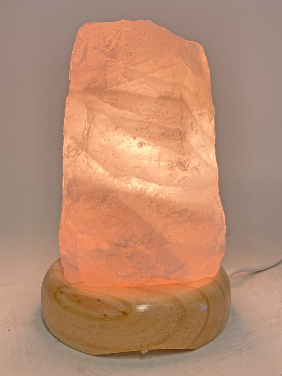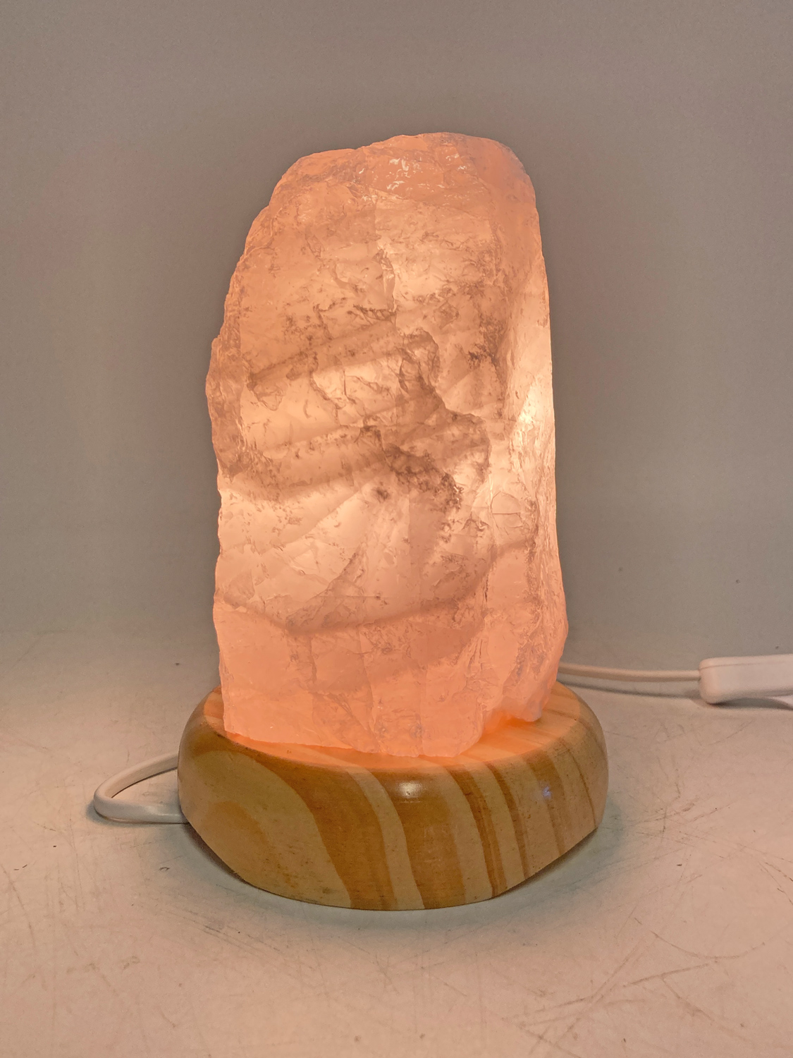 Diese hochwertige Leuchte aus brasilianischen Rosenquarz erzeugt ein angenehmes Licht und erschafft eine gemütliche Atmosphäre in jedem Raum.