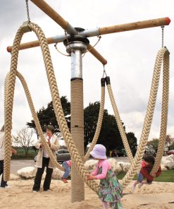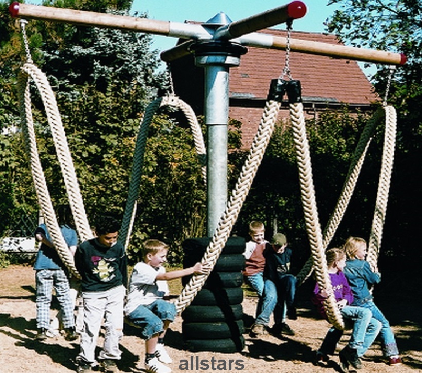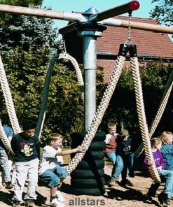 Die Lianen-Schaukel ist ein besonderes Karussell mit Wippfunktion. Die Kinder schweben wie bei den großen Vorbildern durch die Luft. Tarzan läßt grüßen. Da wird ein Hauch von Urwald-Abenteuer wach, wenn die Dschungel-Helden auf den Lianen träumen. Auf den großen Tampen können mehrere Kinder schaukeln, wippen und sich drehen. Dank der ausgefeilten Konstruktion und der robusten Ausführung erfreut dieses Spielgerät sie viele Jahre.