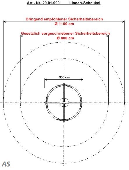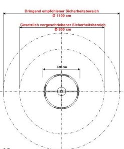 - Platzbedarf inkl. Sicherheitsbereich: gesetzlich vorgeschrieben Ø 8 m