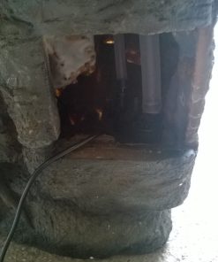 Der Brunnen ist aus einem Stück gegossen und hat an der Rückseite eine Eingriffsklappe durch die man zur schon vorinstallierten Pumpe gelangt. Die Pumpe liegt nicht sichtbar im inneren des Brunnens. Außerdem werden durch die Eingriffsklappe auch noch die Kabel der LED Beleuchtung zum Trafo geführt. Dieser muss außerhalb des Brunnens positioniert werden. Das Wasser wird mit der im Lieferumfang enthaltenen Pumpe immer wieder über den Brunnen gepumpt.Sie müssen lediglich das verdunstete Wasser immer wieder nachfüllen.