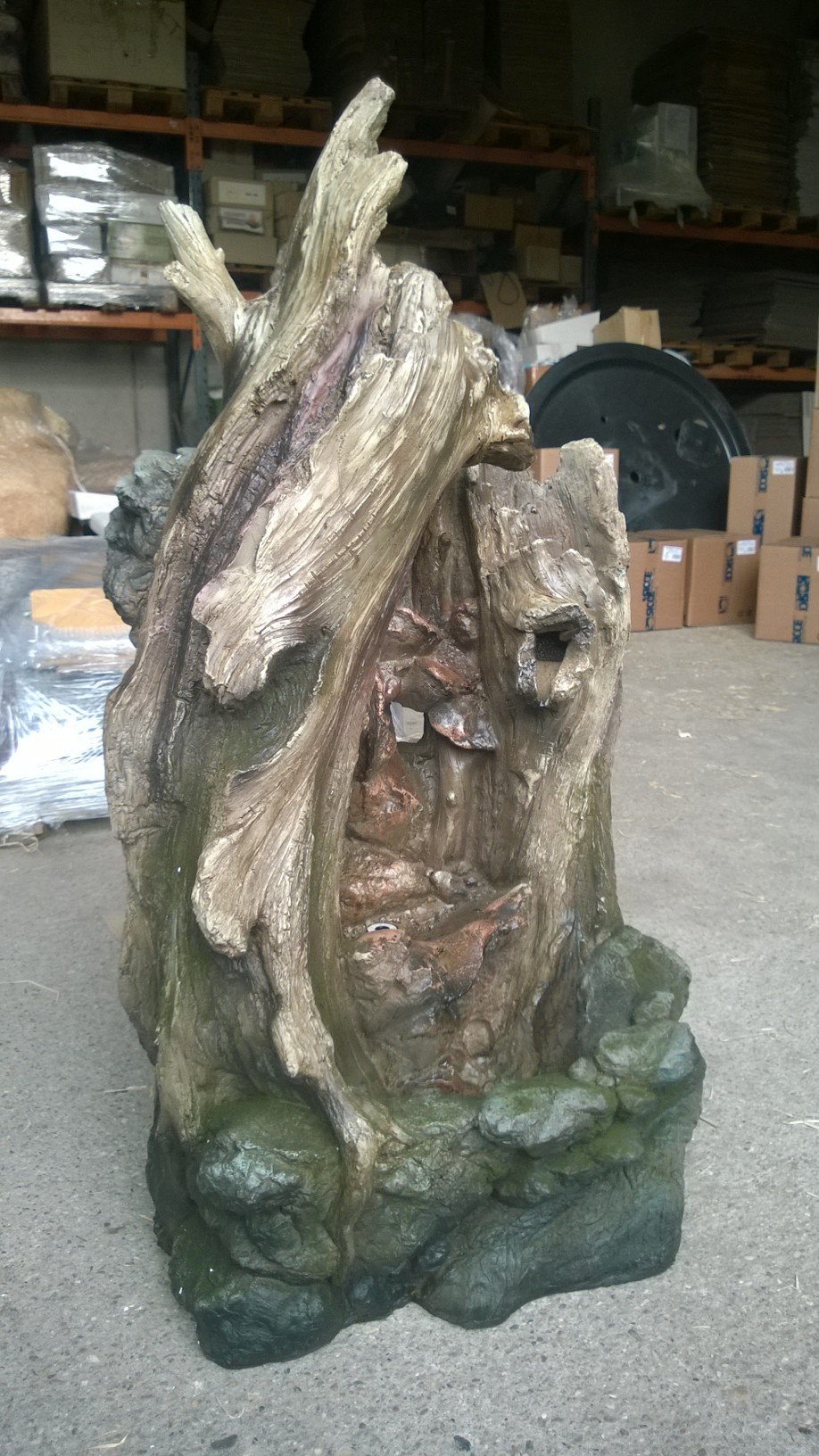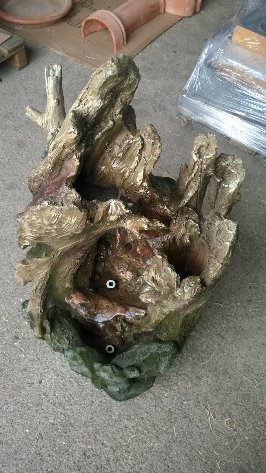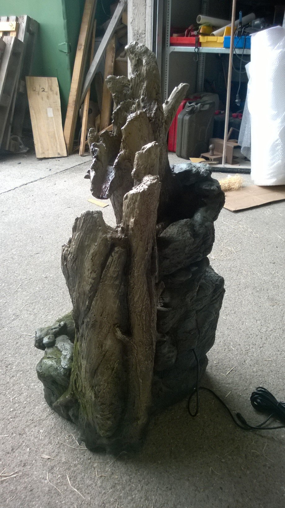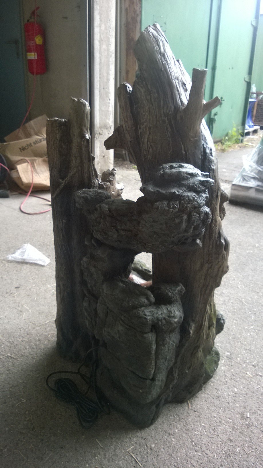 Lieferumfang: Polyresin Brunnen, passende Pumpe (“outdoor”-tauglich), LED-Unterwasserlichter inkl. Trafo