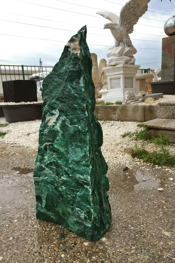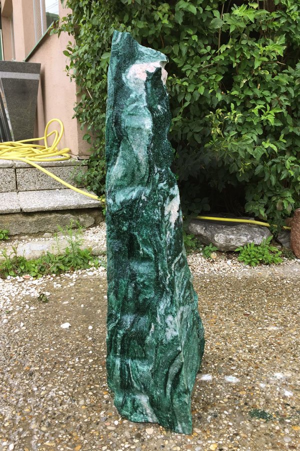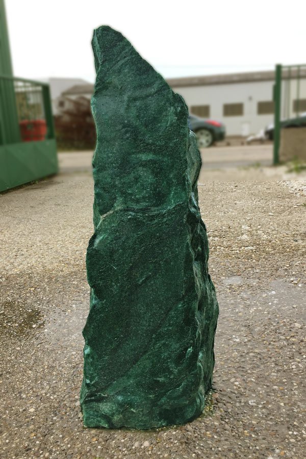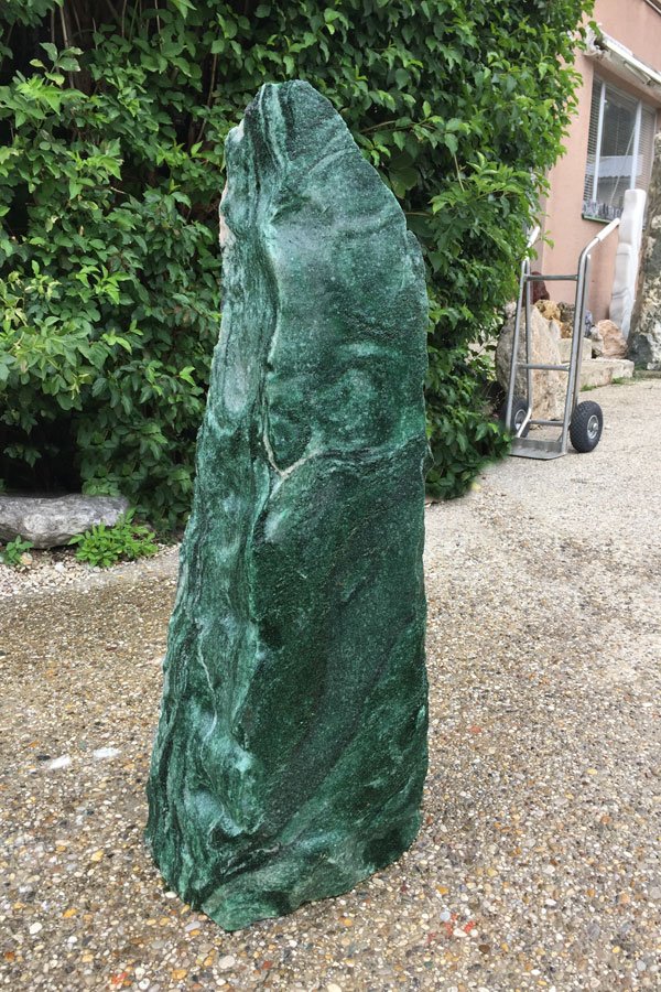 Herrlich gefärbter und geaderter Quarzit mit hohem Fuchsit-Anteil aus dem hohen Norden (Herkunft Norwegen – Oberhalb des Polarkreises !). Das satte tiefe Grün dieses Materials sucht seinesgleichen. Das Material ist 100% frostsicher!