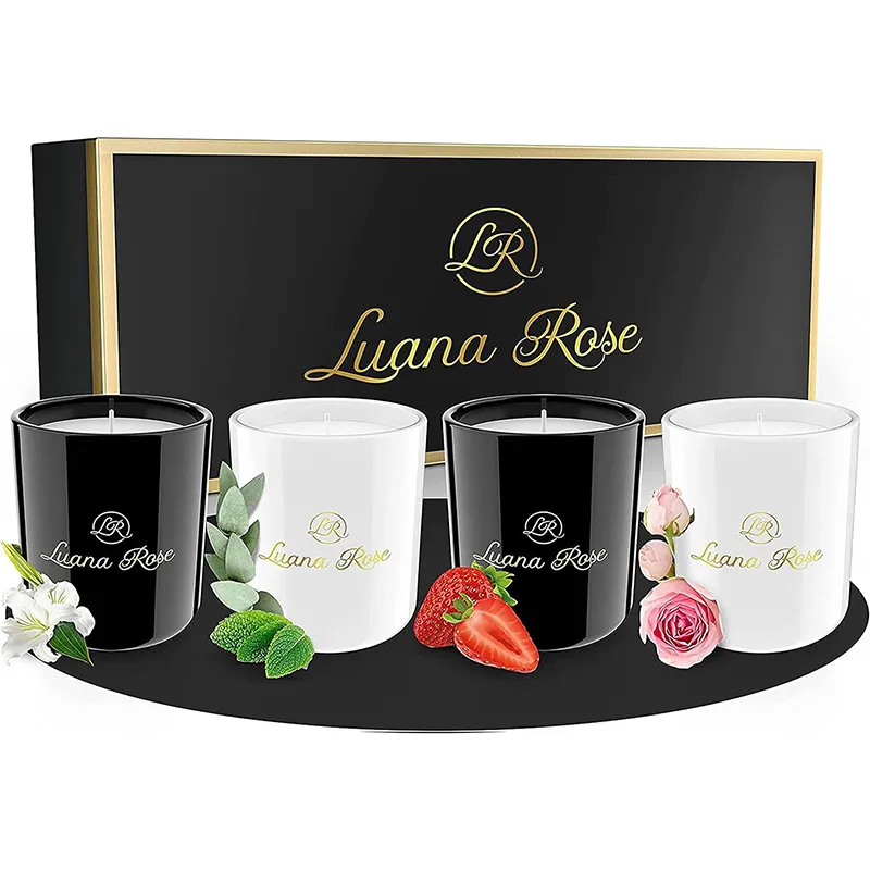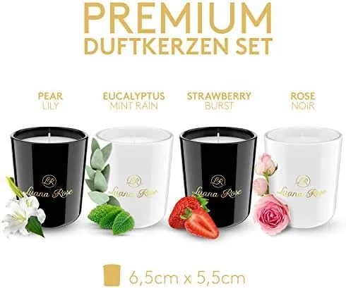 Luana Rose Duftkerzen Geschenkset – 4x 70g, Langanhaltender Duft, 100% Natürliche Sojawachs mit Ätherischen Ölen – Hochwertige Geschenke für Frauen, Aromatherapie Kerze