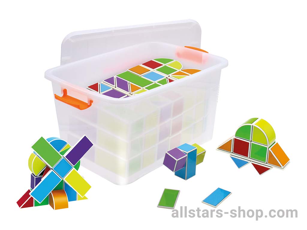 Dank integrierter Magnete haften die Bausteine aneinander und ermöglichen den Bau dreidimensionaler Konstruktionen – egal ob Haus, Auto oder Phantasiefigur. Beim Bauern von Figuren miteinander stärken die Kinder auch ihre Sozialkompetenz und verbessern ihre Kommunikation und Motorik .