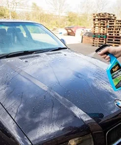 2. Flasche vorab gut schütteln. Auf der kühlen Oberfläche, im Schatten anwenden. Sprühen Sie Meguiar’s Hybrid Ceramic Wax sparsam auf das nasse Fahrzeug auf.