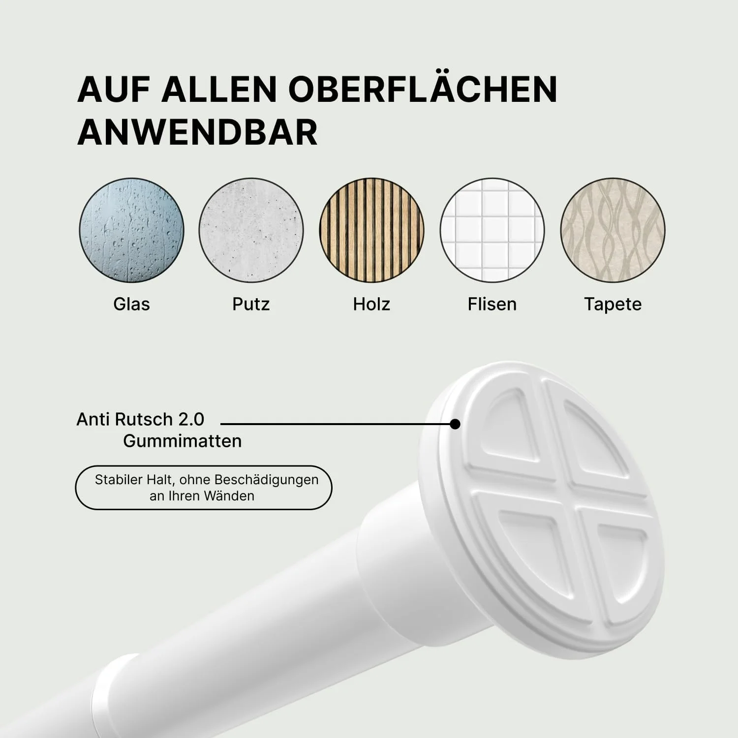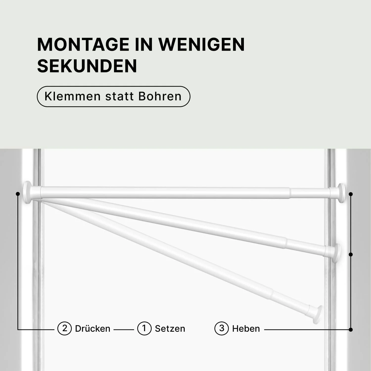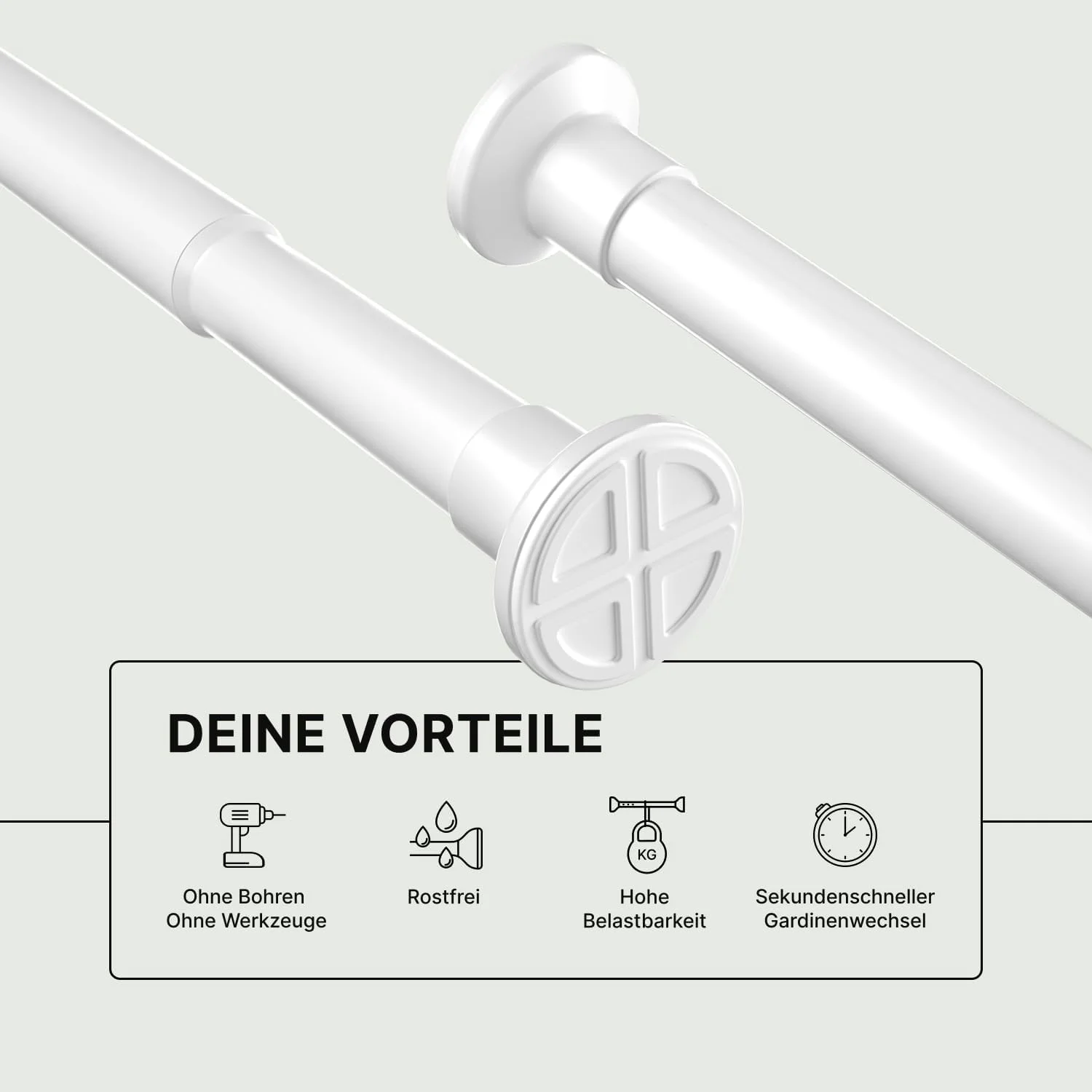 schnell & schadensfrei mit unserer flexiblen Spannstange – ganz ohne Werkzeug! Tragkraft für schwere Vorhänge, rutschfest & langlebig.