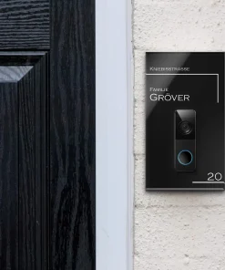 Du suchst eine stilvolle Möglichkeit um Deine Funkklingel im Hauseingang zu befestigen? Gestalte eine Klingelplatte für Deine Funkklingel und personalisiere sie genau nach Deinen Wünschen. Unsere hochwertigen Funkklingelschilder aus massivem V2A Edelstahl und hochglänzendem Acrylglas machen Deine Doorbell Türklingel zu einem echten Hingucker im Eingangsbereich.