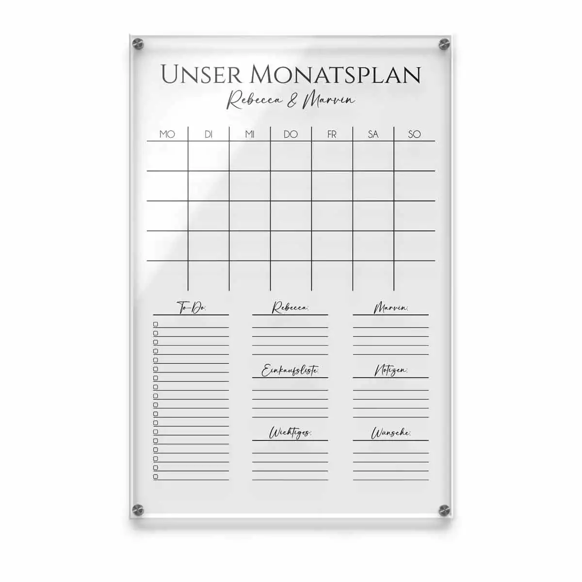 Gestalte einen individuellen Kalender aus Acrylglas ganz einfach selbst. Egal, ob als Geschenk zum Geburtstag, Vatertag, Jahrestag oder für das Eigenheim – Familienkalender stellen einen persönlichen und gleichzeitig dekorativen Alltagshelfer dar.