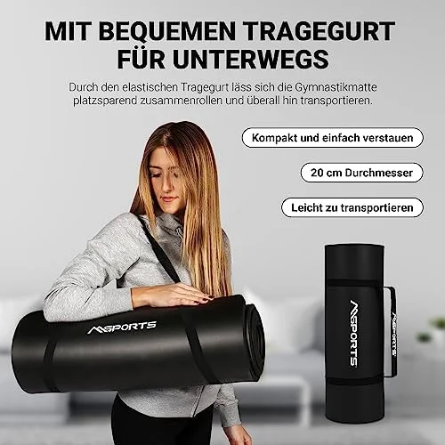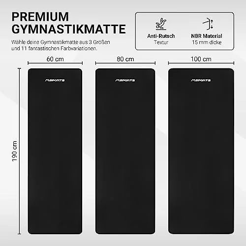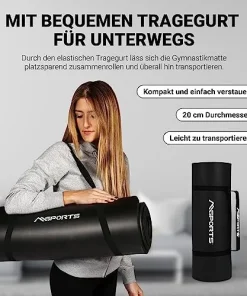📦 Lieferumfang – Gymnastikmatte 2025 mit Tragegurt, Workout-App & Übungsposter. Verschiedene Farben & Grössen erhältlich.