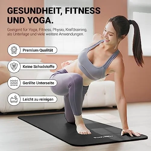🌱 Hochwertiges Material – Hergestellt aus umweltfreundlichem NBR-Kautschuk, ist die Matte frei von Weichmachern, geruchsneutral, hautfreundlich und extrem robust.