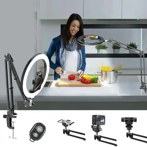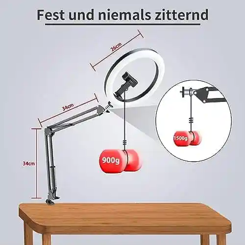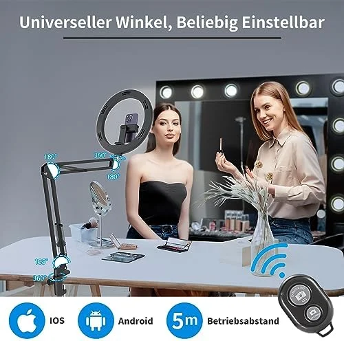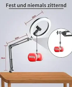 - 💪 [Stabil und flexibel] – Metallarm für flexible Positionen und eine Bluetooth-Fernbedienung für Fernaufnahmen.