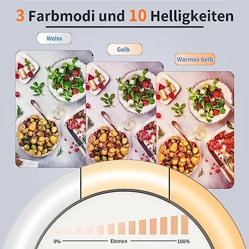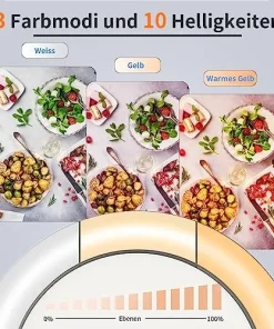 - 💡 [Einstellbare Helligkeit und Farbtemperatur] – 3 Farbmodi, 10 Helligkeitsstufen, und 120 LEDs für blendfreies Licht.