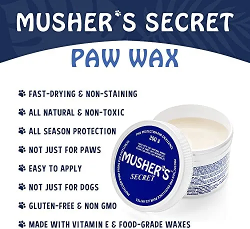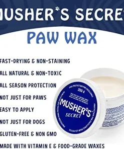 - Das Original und weltberühmte Musher’s Secret! Ein 100% natürliches pfotenbalsam das eine atmungsaktive Barriere für die Pfoten Ihrer Tiere bildet – es schützt, pflegt und beruhigt die Pfoten