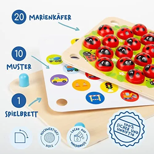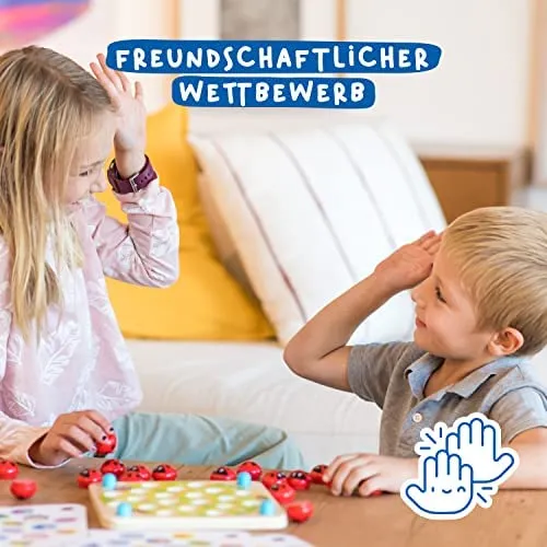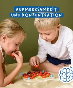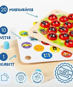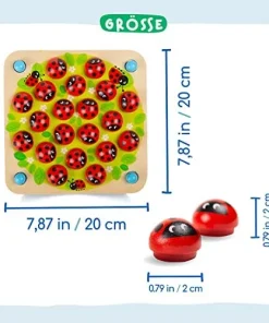 Dieses Marienkäfer-Konzentrationsspiel leistet einen wichtigen Beitrag zur natürlichen Schulung der Feinmotorik und Geschicklichkeit Ihres Kindes. Indem die kleinen Marienkäferteile aufgedeckt werden, fördert dieses Spiel die Präzision und die Hand-Augen-Koordination!