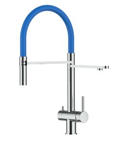 - Nr. 4 Panzerflex Anschluss-Schläuche mit 3/8″-Anschluss: 3 rot und blau markiert für Leitungswasser (3/8″-Anschluss) und 1 neutral für Filterwasser (mit Optional 1/4″ Adapter)