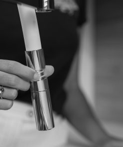 Eine Besonderheit ist unsere eigens entwickelte, sehr solide Handbrause. Die Umschaltfunktion von Regenbrause auf Volumenstrahl ist druckunabhängig. Schon mit geringem Wasser-Volumen entsteht ein sehr sanfter Regenstrahl, der nur das wäscht, was er waschen soll. Diese Funktion finden Sie nur bei uns! Ein Handgriff und die Handbrause ist arretiert. Kein unbeabsichtigtes Lösen und Herabfallen der Handbrause! Zudem haben wir spezielle O-Ringe verwendet, welche einen weichen Sitz ermöglichen und vermeiden, dass die Oberflächen verkratzt werden. Wunderschön anzuschauen und einfach zu reinigen!