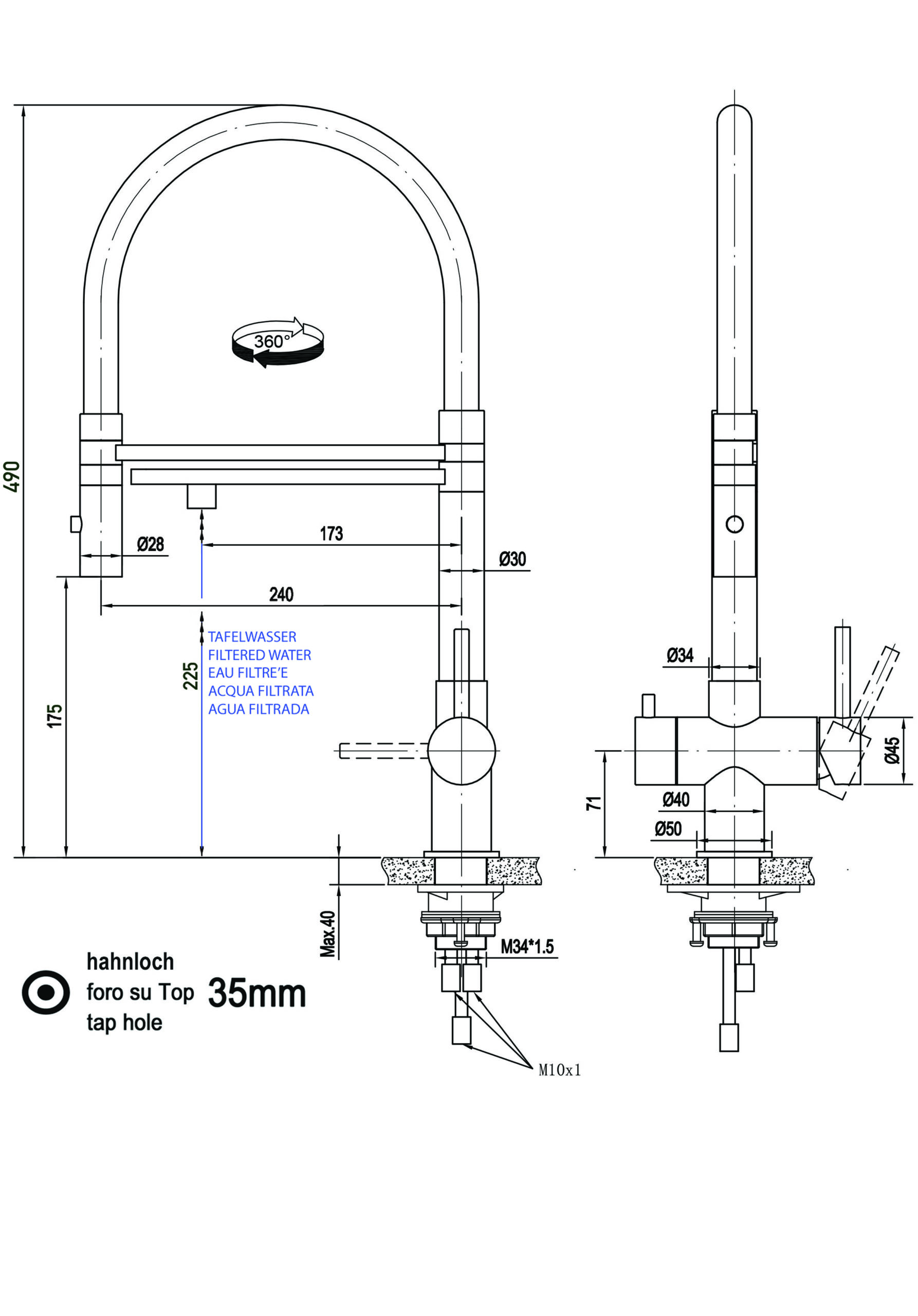 - Bohr/Hahnloch der Spüle: 35mm.
