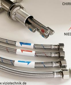 Flex-Schlauch aus Stahlfeder oder Silikon mit höchstem Hygieneanspruch. Grosser Aktionsradius von ca. 60 cm durch die Schlauchbrause.