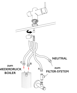 Niederdruck-Armaturen werden überall da benötigt wo nur ein Kaltwasser Anschluss besteht und heisses Wasser am Ort der Entnahme durch einen Niederdruck-Boiler bereitgestellt wird. Dieses System ermöglicht zudem Energie zu sparen, da nur da und nur dann Warmes Wasser erstellt wird, wenn es benötigt wird! Bein normalen Armaturen und Systemen ist der Warmwasserkanal vom Zentralen Heizsystem bis zu Entnahmestelle zu erwärmen bevor das Warme Wasser fliesst!