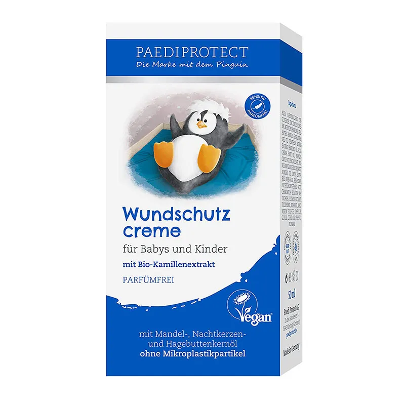 - PAEDIPROTECT Wundschutzcreme schützt gereizte und empfindliche Haut und beugt zudem Wundwerden und Rötungen vor.