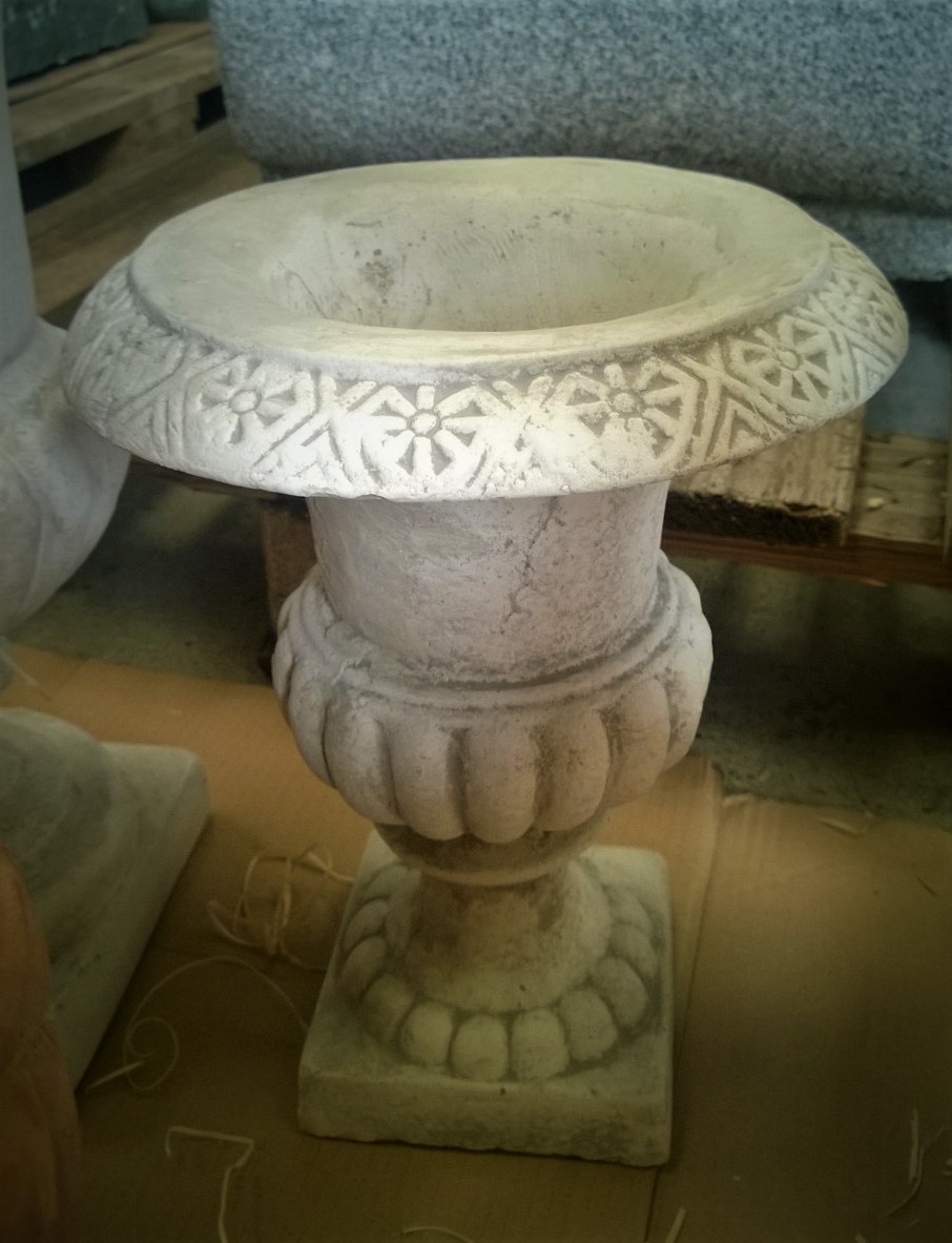 Dieses Pflanzengefäß stellt sich klassisch im antiken Stil dar. Es ist schlicht gehalten und eignet sich zum Bepflanzen mit Blumen, Sträuchern oder einem kleinen Baum.