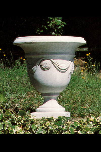 Hierbei handelte es sich um eine erhabene, reich verzierte Schale mit Sockel, welche aus der Antike stammen könnte. Sie dient als Dekoration oder zur Bepflanzung.
