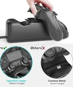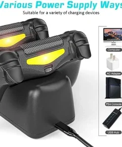 Ermöglicht das bequeme Lagern und Aufladen von 2 PS4 Controllern über 5 V / 1 A von Ihrem Computer, Ihrer PS4 / Slim / Pro Konsole, einem Wandadapter, einem USB-HUB usw.