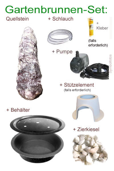 Sie können diesen Quellstein auch einfach als Gartenbrunnen Komplett-Set bestellen. (Wählen Sie hierzu einfach oben die Option in der Checkbox)