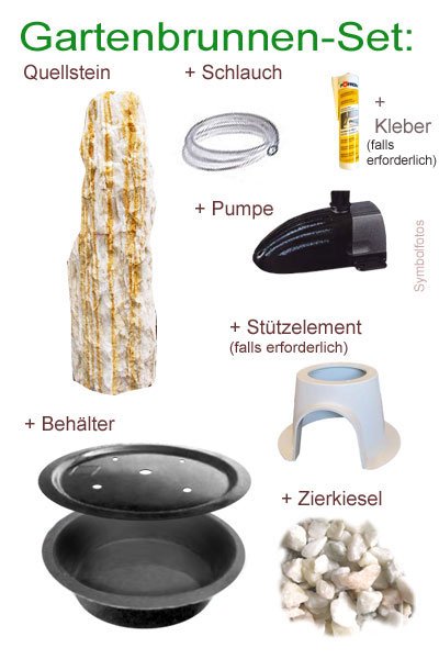 Sie können diesen Quellstein auch einfach als Gartenbrunnen Komplettset zum Preis von € 401,– bestellen. (Wählen Sie hierzu einfach oben die Option im dropdown Menü)