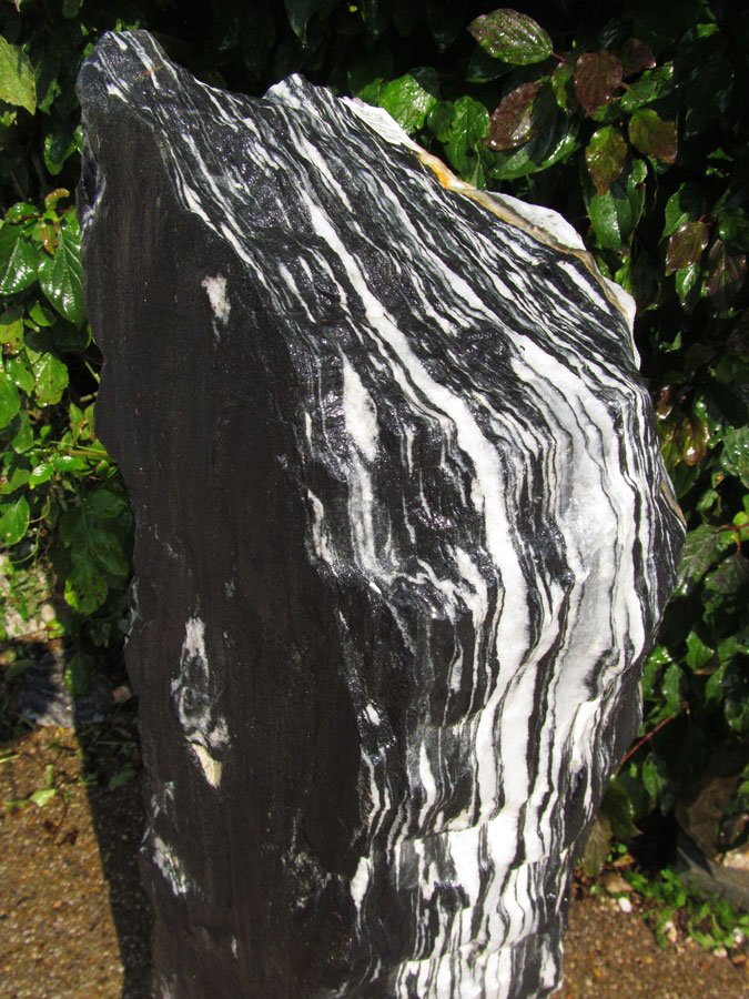 Dekorativer Quellstein für Garten- oder auch Zimmerbrunnen, aus schwarzem Marmor mit weißen Einschlüssen. Sehr schöne Zeichnung! Das Material ist 100% frostsicher!