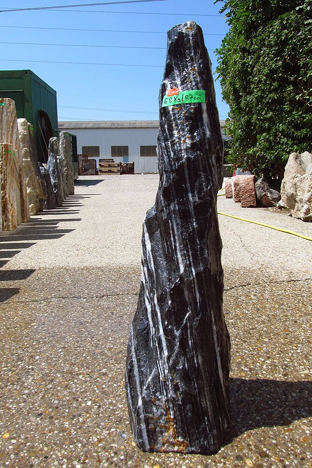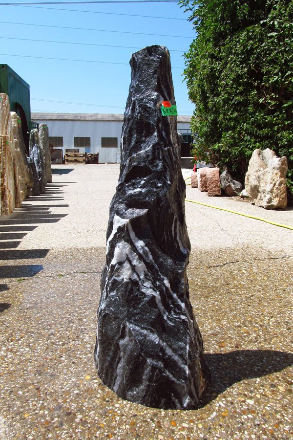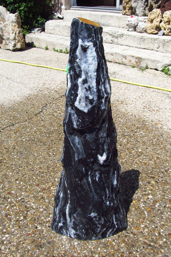 Dekorativer Quellstein für Garten- oder auch Zimmerbrunnen, aus schwarzem Marmor mit weißen Einschlüssen. Das Material ist 100% frostsicher