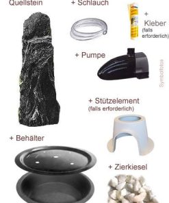 Um den Stein gegen eventuelles Kippen zu sichern ist im Lieferumfang des Quellsteines eine Kartusche (435g) eines Polymerklebers enthalten mit dem man den Quellstein mit dem Untergrund verkleben kann. Zum Auftragen des Klebers wird eine handelsübliche Silikonpistole benötigt, welche nicht im Lieferumfang enthalten ist.