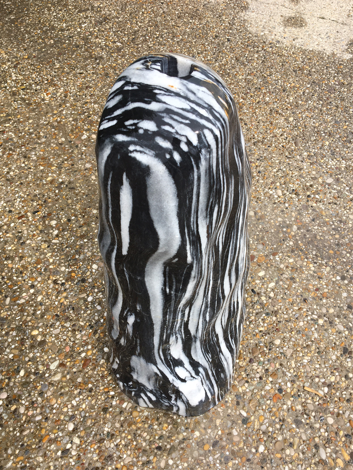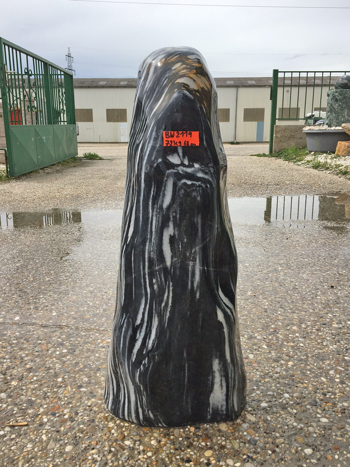 Dieser dunkelgraue bis schwarze Marmor mit seinen weißen Zeichnungen ist ein echter Blickfang und fügt sich perfekt in jedes Ambiente ein. Die Oberfläche dieses Steines ist in aufwendiger Handarbeit glatt geschliffen, was ihn besonders elegant macht. Das Material ist 100% frostsicher!
