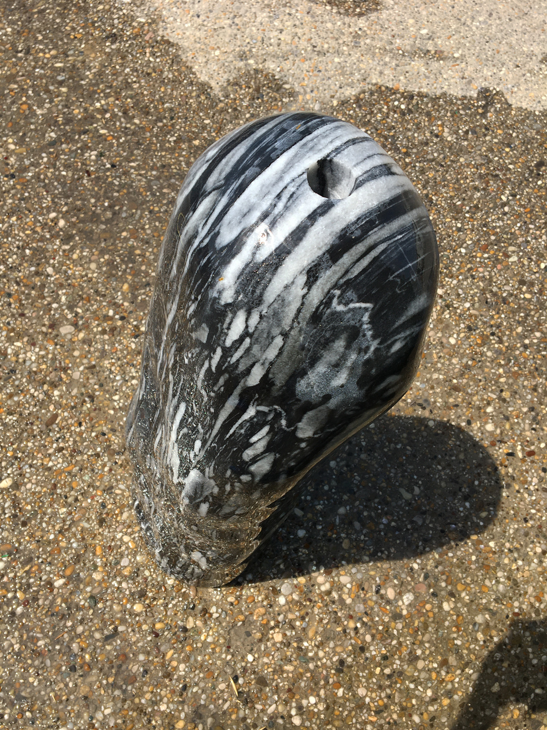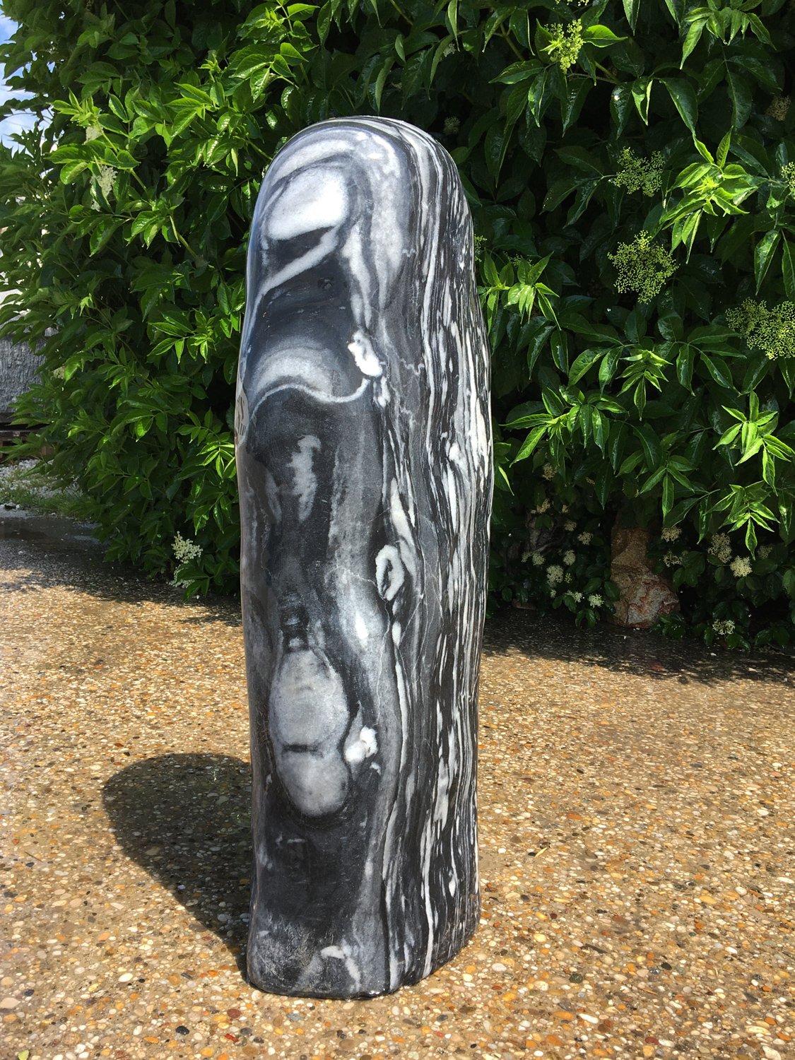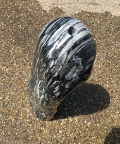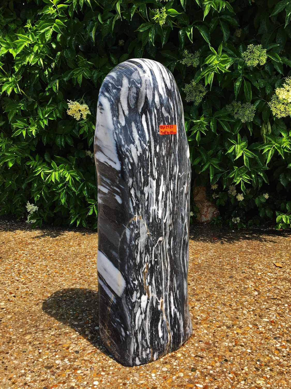 Dieser dunkelgraue bis schwarze Marmor mit seinen weißen Zeichnungen ist ein echter Blickfang und fügt sich perfekt in jedes Ambiente ein. Die Oberfläche dieses Quellsteines wurde in aufwändiger Handarbeit glatt geschliffen, was ihn noch eleganter macht.