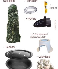Um den Stein gegen eventuelles Kippen zu sichern ist im Lieferumfang des Quellsteines eine Kartusche (435g) eines Polymerklebers enthalten mit dem man den Quellstein mit dem Untergrund verkleben kann. Zum Auftragen des Klebers wird eine handelsübliche Silikonpistole benötigt, welche nicht im Lieferumfang enthalten ist.