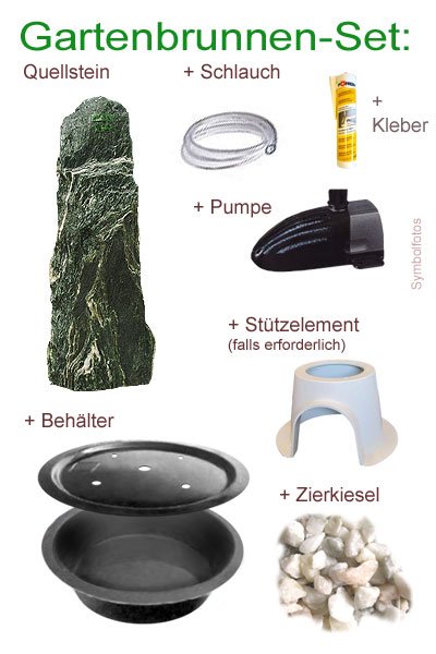 Sie können diesen Quellstein auch einfach als Gartenbrunnen Komplettset zum Preis von € 807,– bestellen. (Wählen Sie hierzu einfach oben die Option im dropdown Menü)