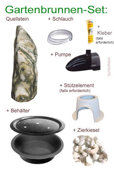 Sie können diesen Quellstein auch einfach als Gartenbrunnen Komplettset zum Preis von € 401,– bestellen. (Wählen Sie hierzu einfach oben die Option im dropdown Menü)