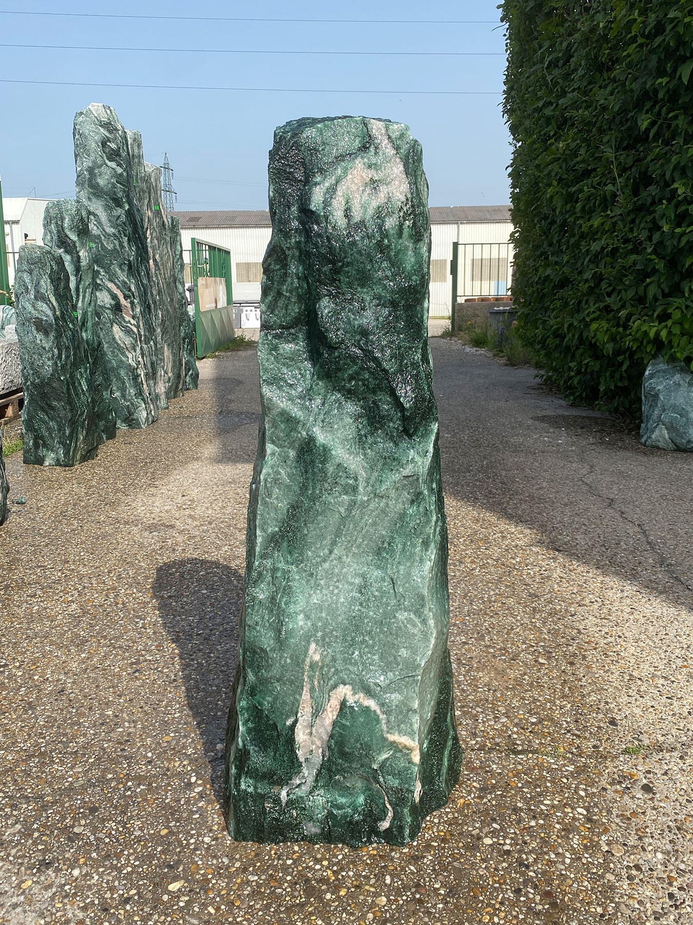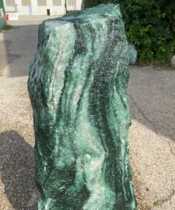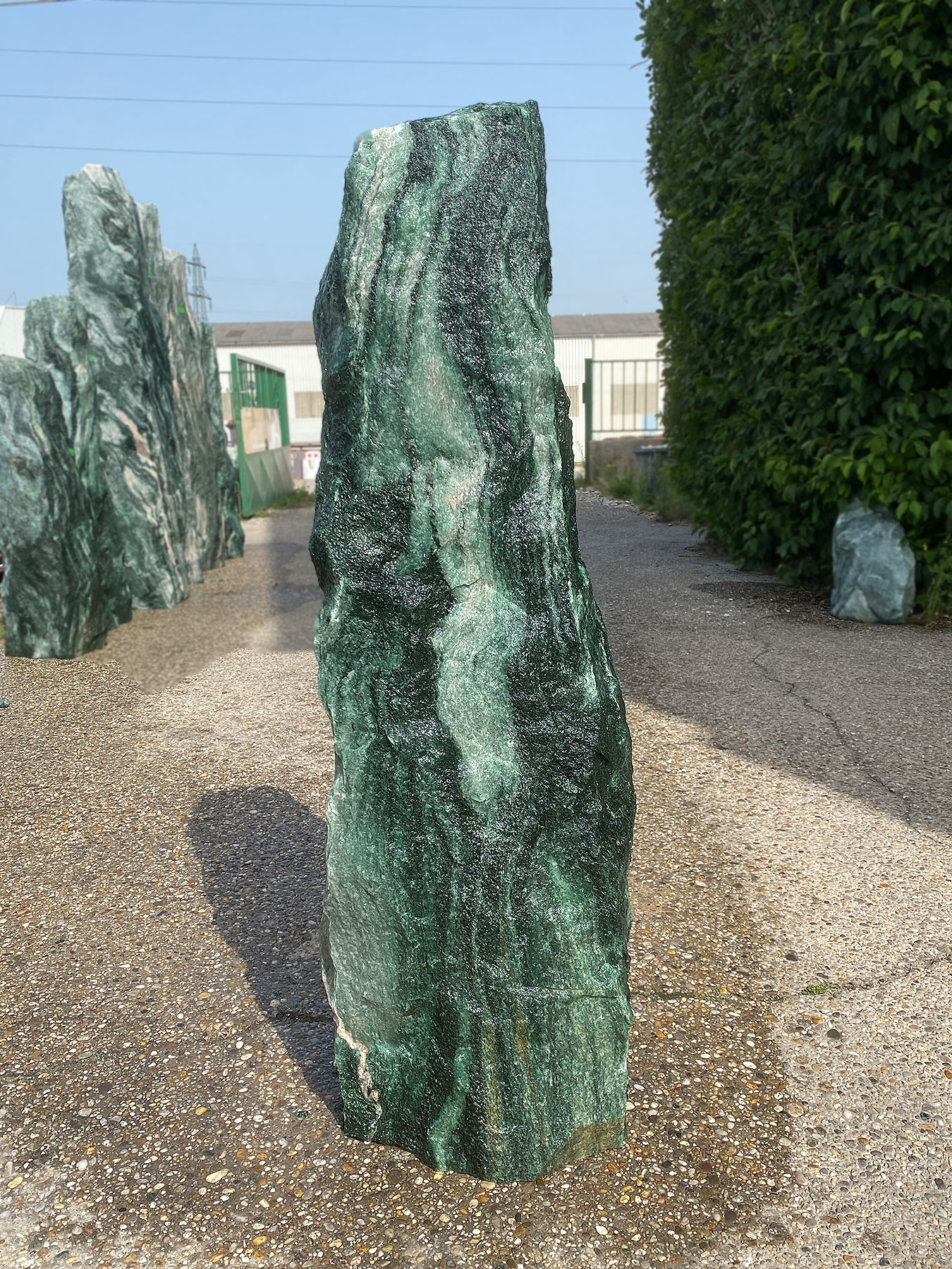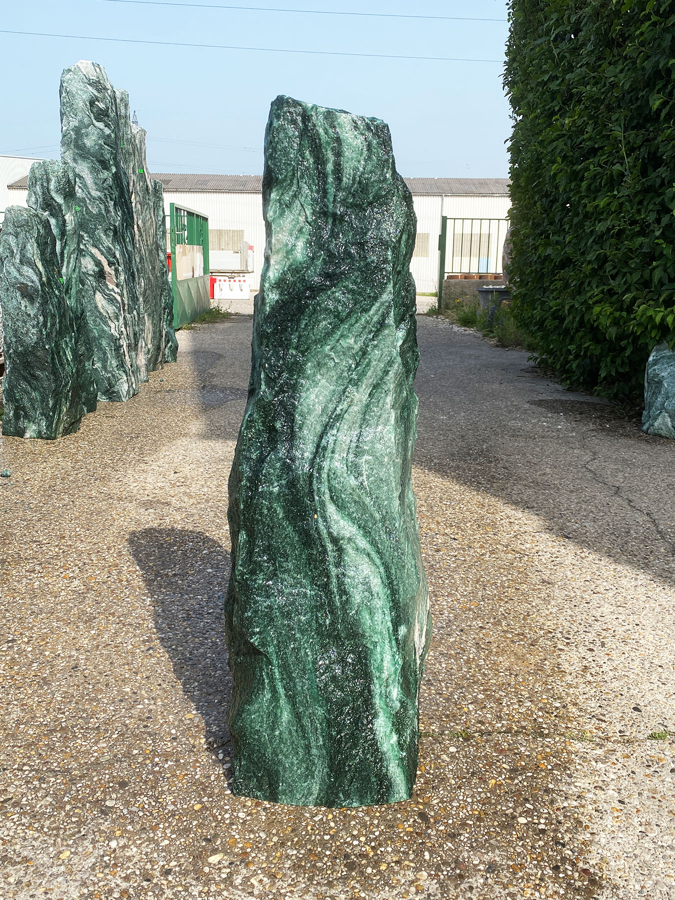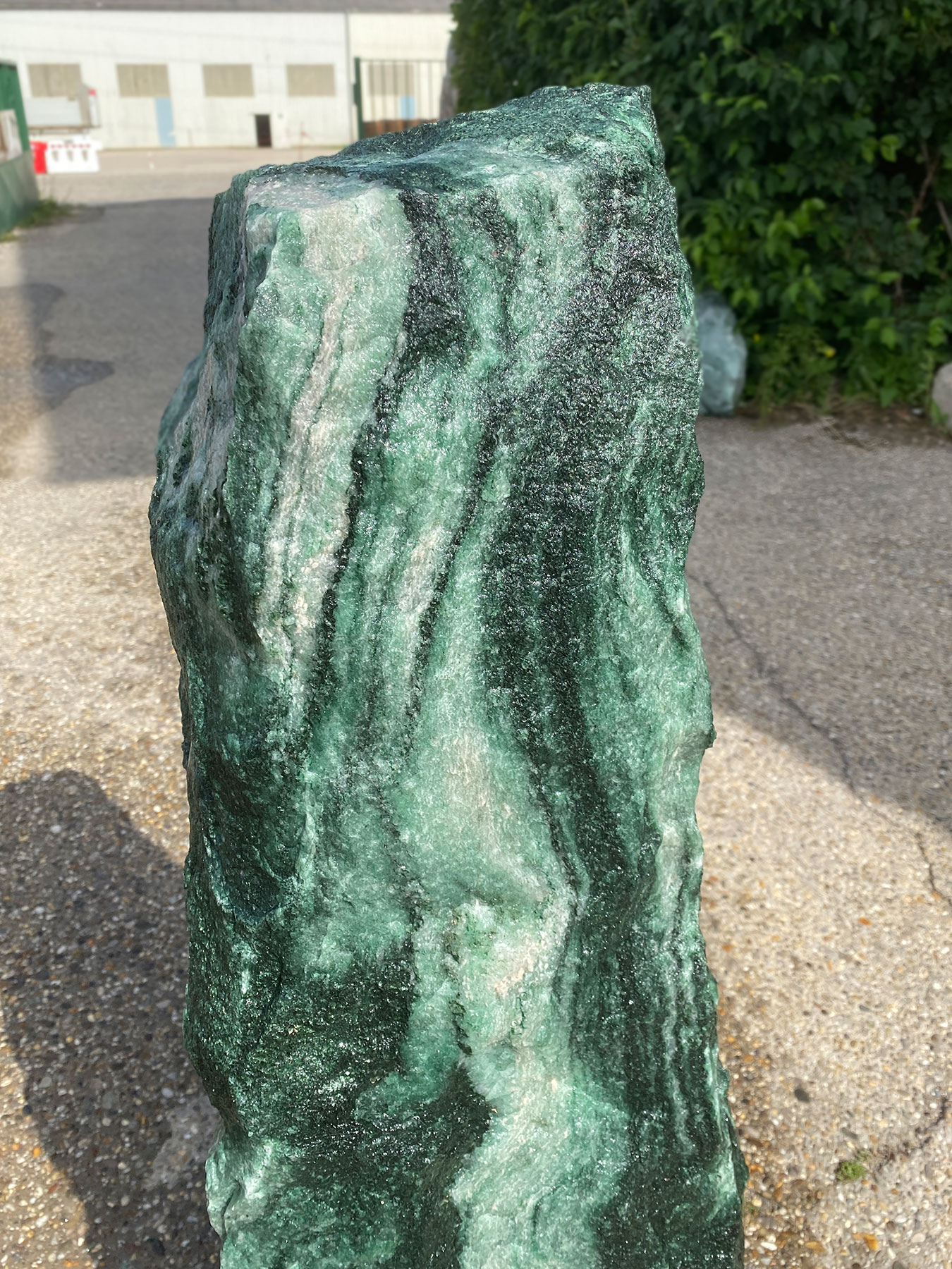 Atemberaubend ist dieser wundervoll gefärbte und geäderte Quarzit mit einem hohen Anteil an Fuchsit. Der Stein stammt aus dem hohen Norden Norwegens, oberhalb des Polarkreises. Er beeindruckt mit seinem satten, tiefen Grün.