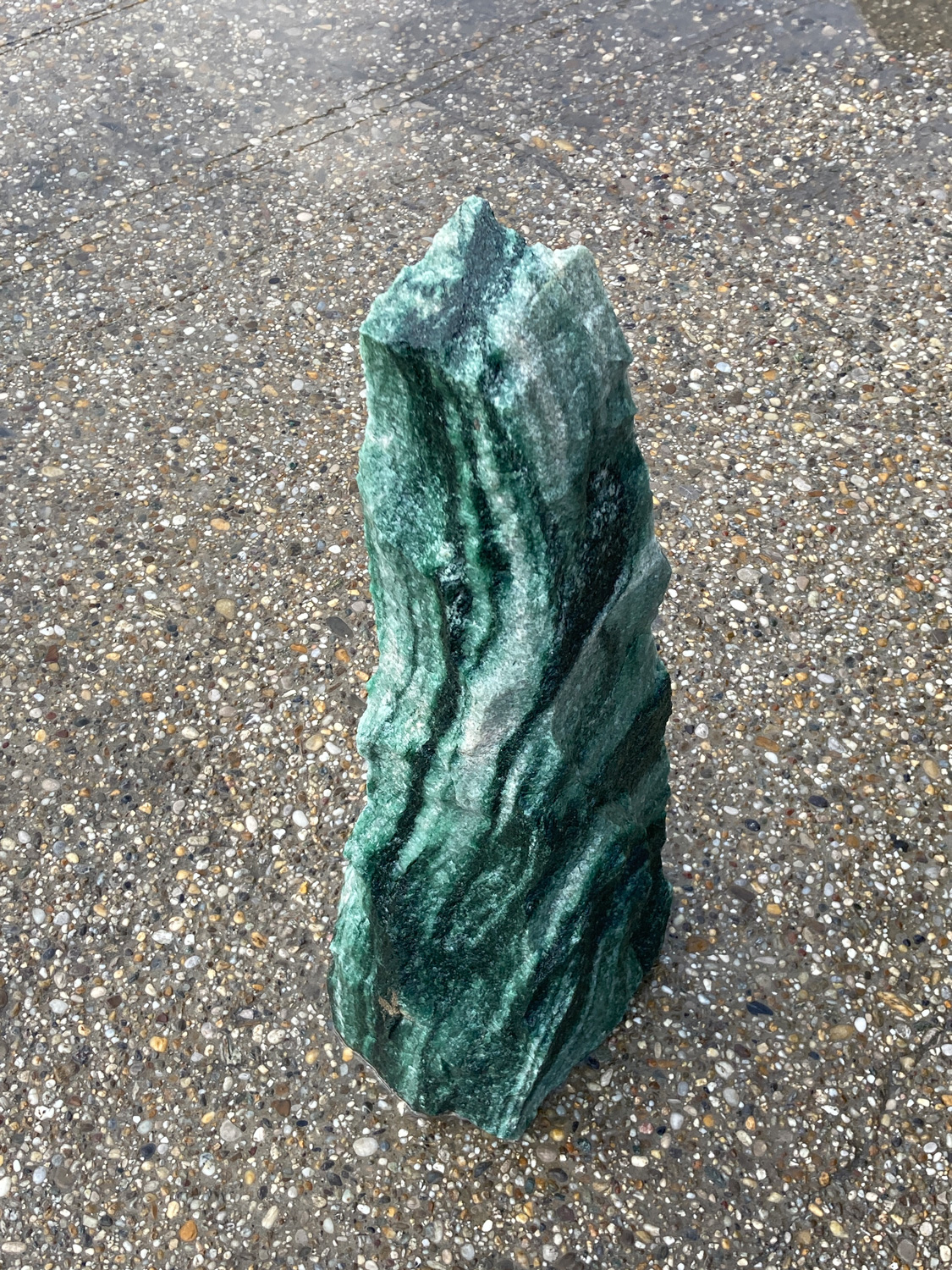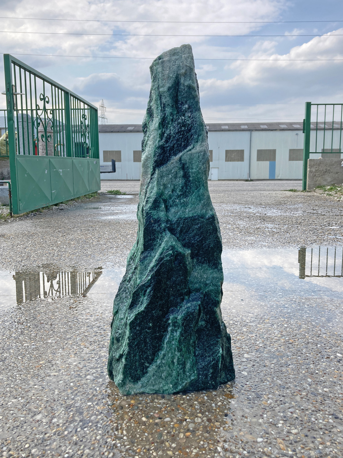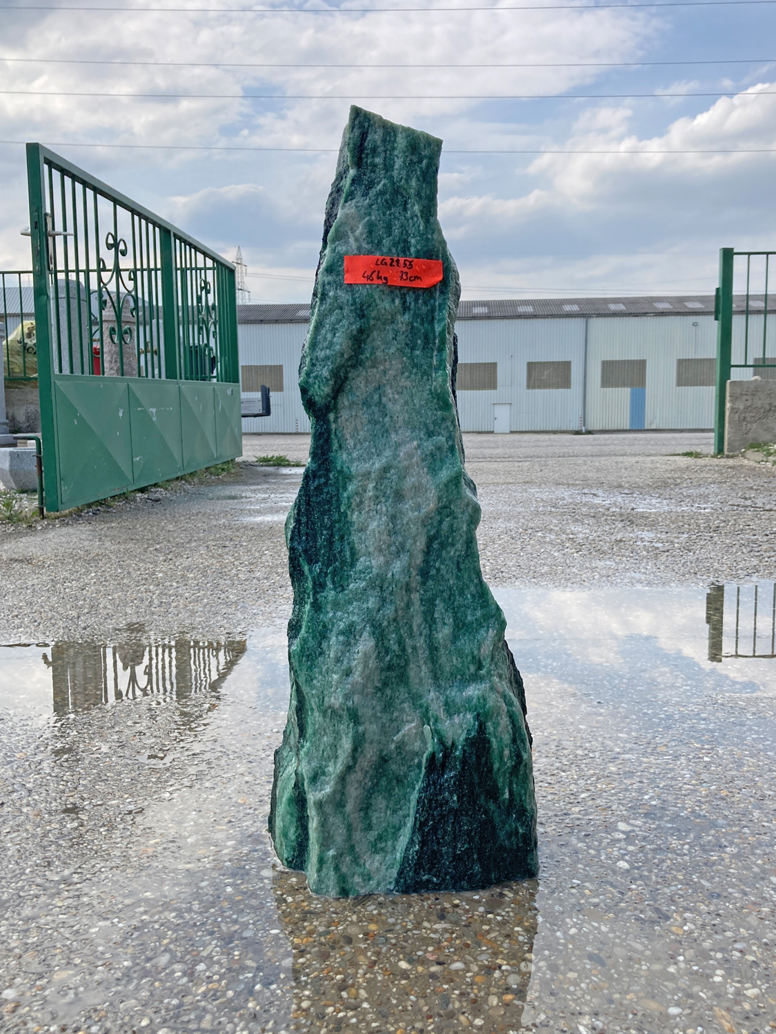Herrlich gefärbter und geaderter Quarzit mit hohem Fuchsit-Anteil aus dem hohen Norden (Herkunft: Norwegen – Oberhalb des Polarkreises!). Das satte tiefe Grün dieses Materials sucht seinesgleichen. Das Material ist 100% frostsicher!